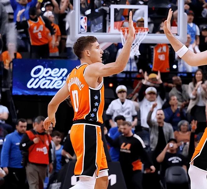 博格丹完成暴走就很让人兴奋了。别忘了,上场博格丹的状态就拉满了,可惜上场时间不是很高。而这场比赛博格丹不仅三分精准,也能防守,还能串联一下,他给到了全方位的帮助。现在来看,他确实是需要自信的球员。只要斗志起来了,那么他就可以主导局势。只是末节哈登累了球权不够多,这是遗憾。