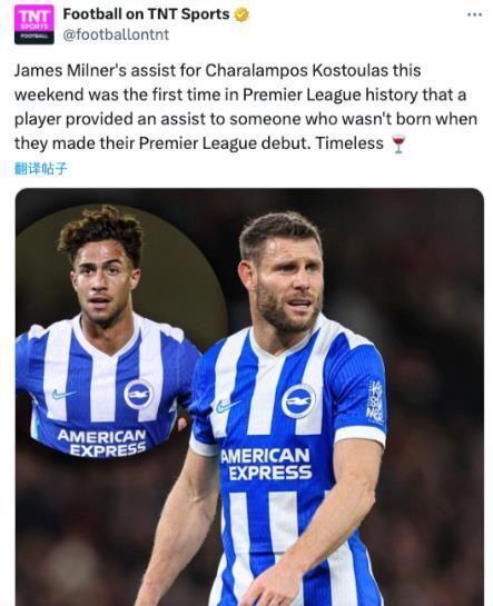 这意味着英超历史上首次,有球员为在他英超首秀时还未出生的球员送出助攻。 米尔纳的职业生涯,漫长到足以覆盖一个孩子的整个成长周期,并最终在球场上与他成为队友,完成一次传承的接力。